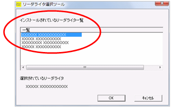 “インストールされているリーダライタ一覧”よりお使いになるリーダライタを選択してください。